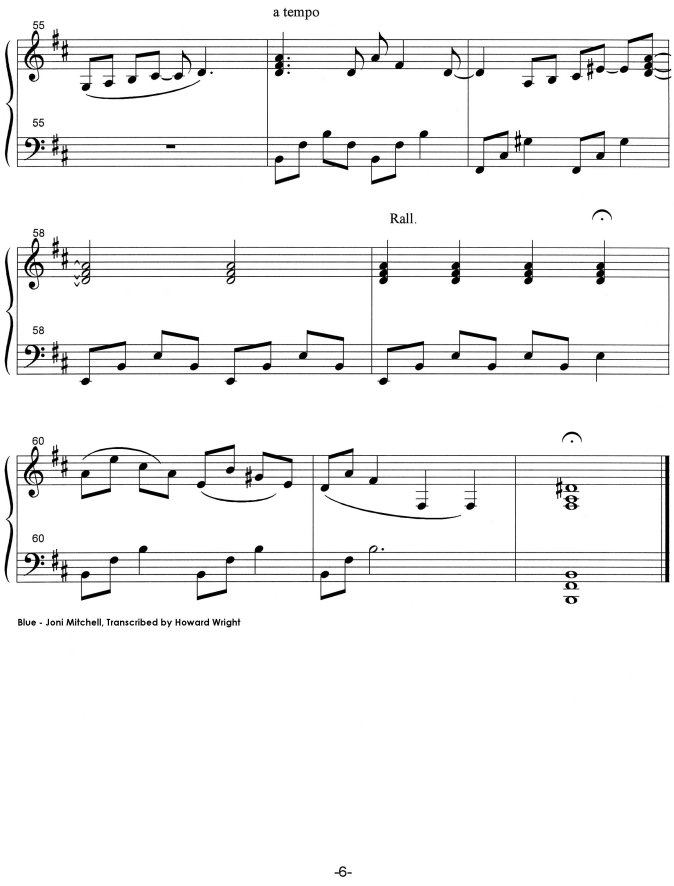 Joni "rolls" the final chord, so the lowest notes are played a fraction before the higher ones.