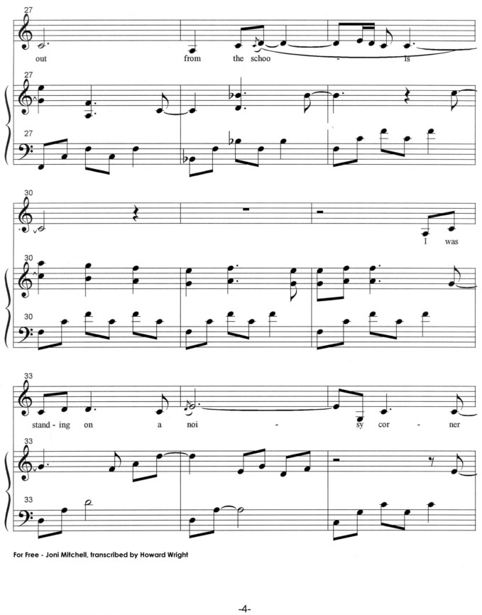 Piano music for "For Free", Joni Mitchell